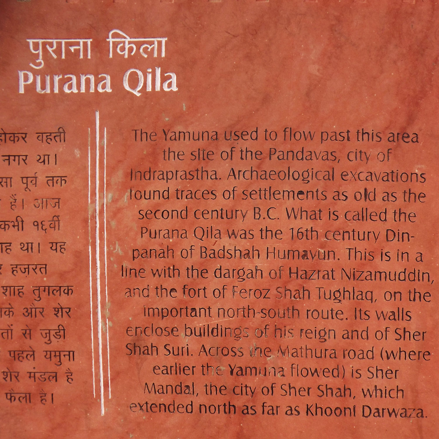 If you walk into what is presently known as the Purana Quila in New Delhi, India and meander to the left along the massive walls, chances are you will not fail to spot an old stone tablet inscribed with the words: The Yamuna used to flow past this area, the site of the Pandavas, city of Indraprasta. This deduction (though not universally agreed upon as conclusive evidence) is derived from the fact that there existed within the fortified citadel an ancient village known as Indraprat among the ruins of several other settlements dating back to the second century and possibly farther back into the past.