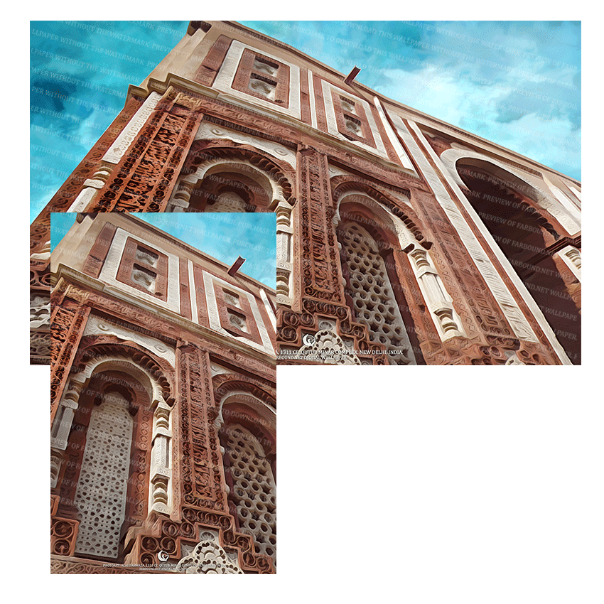 History:This Digital Wallpaper/Desktop Wallpaper/Desktop Background/Laptop Wallpaper/Mobile Phone Wallpaper/Qutub Architecture Wallpaper/Medieval architecture Wallpaper/Alai Darwaza Wallpaper/Qutub Wallpaper, features a photoart presentation of the Alai Darwaza at the Qutub Minar Complex. A testament to the skills of Turkish artisans who left behind both epic-scale buildings and intricate engravings, the Qutub Minar Complex is a collection of incredible architectural monuments dating back to between the 12-13 century CE. This UNESCO world heritage site was erected by the early sultans of the Delhi Sultanate - a series of short-lived dynasties of Turkish and later Afghan stock who ruled North India, based in the region of present-day Delhi.