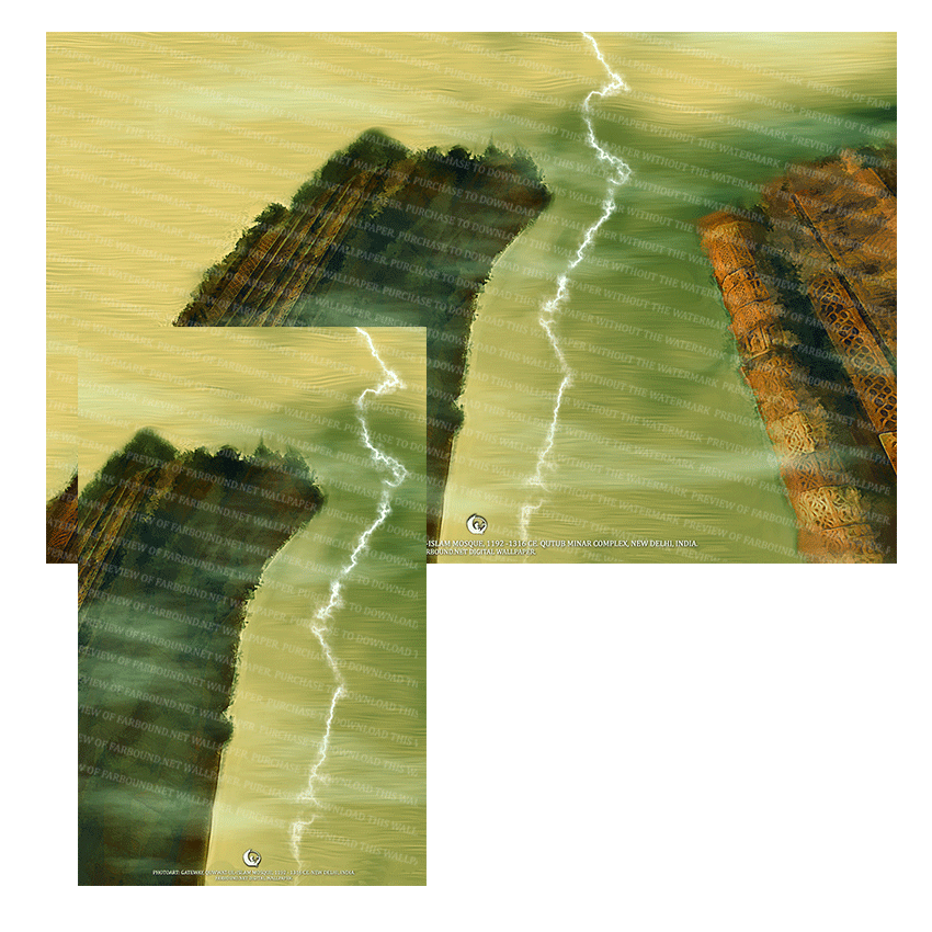 History: This Digital Wallpaper/Desktop Wallpaper/Desktop Background/Laptop Wallpaper/Mobile Phone Wallpaper/Qutub Architecture Wallpaper/Medieval architecture Wallpaper/Qutub Wallpaper, features a photoart presentation of the broken arched gateway of Quwwat-ul-Islam mosque at the Qutub Minar Complex. The mosque was commissioned in 1192 Ce by Qutub-ud-din-Aibak and later built upon by his successors till 1316 Ce. A testament to the skills of Turkish artisans who left behind both epic-scale buildings and intricate engravings, the Qutub Minar Complex is a collection of incredible architectural monuments dating back to the 12-13 Ce.