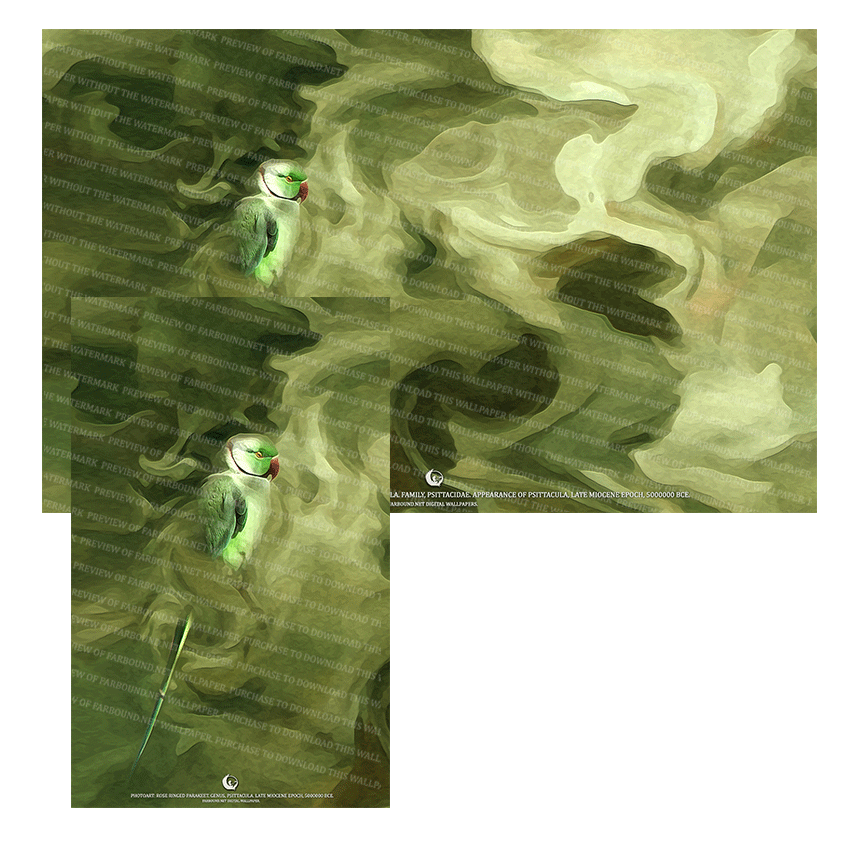 Download and decorate your desktop and mobile phone with birds and history. This wallpaper features a photoart presentation of a Rose Ringed Parakeet. This avian belongs to the genus Psittacula – that diverged from ancestral species and appeared during the late Miocene Epoch, 5000000 Bce.