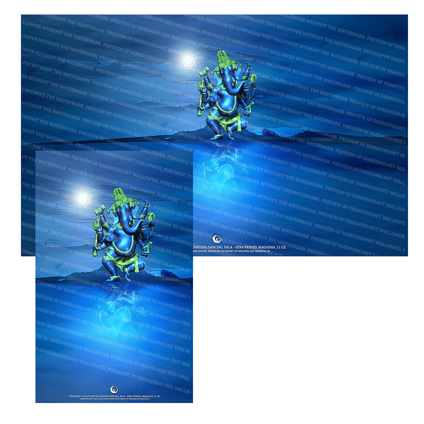 History: This Digital Wallpaper/Desktop Wallpaper/Desktop Background/Laptop Wallpaper/Mobile Phone Wallpaper/Artifacts Wallpaper/Ancient Sculptures Wallpaper/Historic Sculptures Wallpaper/Hindu Gods Wallpaper/Ganesha Wallpaper, features a photoart presentation of a sculpture of Ganesha dancing. The sculpture was produced in the region of Magadha, during what was the Pala-Sena Period, 11 Ce. In the Vedic and Hindu religious texts, Ganesha is the deity of auspicious beginnings and prosperity. Like his father Shiva, Ganesha is also a dancer. The sculpture on which this artistic presentation is based is on exhibit at the Walters Art Museum in the US.