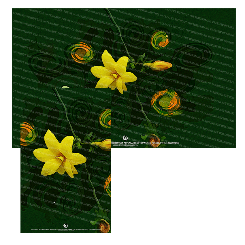 History: This Digital Wallpaper/Desktop Wallpaper/Desktop Background/Laptop Wallpaper/Mobile Phone Wallpaper/Flowers Wallpapers/Winter Jasmine Wallpaper, features a photoart presentation of an invigoratingly yellow Winter Jasmine flower. The Winter Jasmine, also known as Jasminum Nudiflorum, is a flowering plant that blooms in winter, from November to March. The Chinese believe this flower welcomes the Spring. Flowering Plants, like the Winter Jasmine, made their appearance on Earth around 145-120000000 Bce or 145-120 million years ago. During what was the Cretaceous period. The flower was named and classified as Jasminum Nudiflorum by botanist John Lindley in 1886 Ad.
