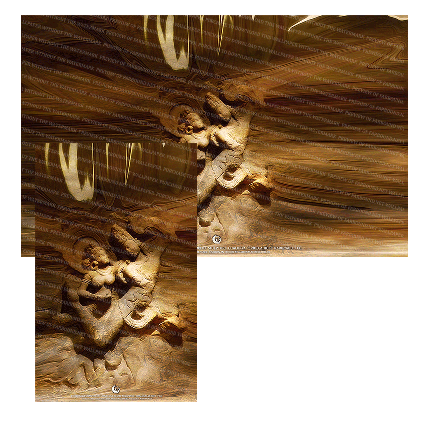 History: This Digital Wallpaper/Desktop Wallpaper/Desktop Background/Laptop Wallpaper/Mobile Phone Wallpaper/Artifacts Wallpaper/Ancient Sculptures Wallpaper/Sculptures Wallpaper/Hindu Gods Wallpaper/Celestials Wallpaper/Flying Celestials Wallpaper, features a photoart presentation of a stone sculpture depicting a pair of flying celestials. The sculpture was produced in Aihole, Karunadu during the Chalukya Period, 7 Ce, and is a high relief stone sculpture. The artifact on which this artistic presentation is based is on exhibit at the National Museum Delhi.