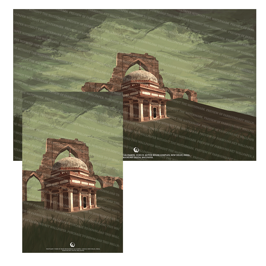 History: This Digital Wallpaper/Desktop Wallpaper/Desktop Background/Laptop Wallpaper/Mobile Phone Wallpaper/Qutub Architecture Wallpaper, features a photoart presentation of the tomb of Iman Muhammad Ali Zamin at the Qutub Minar Complex. Iman Muhammad Ali Zamin was a Turkish saint and his tomb was built in 1538 Ce. A testament to the skills of Turkish artisans who left behind both epic-scale buildings and intricate engravings, the Qutub Minar Complex is a collection of incredible architectural monuments dating back to the 12-13 century Ce.
