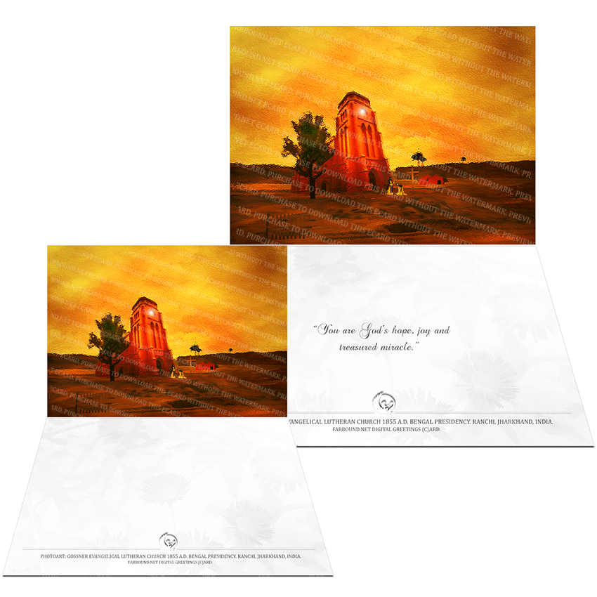 History: This Greetings Card/Motivational Card/Encouragement Card/Christian Card for inspiring friends and loved ones with a motivational message, features a photoart presentation of the Gossner Evangelical Lutheran Church in Ranchi, Jharkhand, India. Built in 1855 Ad, this church is the oldest church in the city of Ranchi. It was constructed by four German priests of the Gossner Evangelical Lutheran Mission, founded in Berlin by Johannes Gossner, a German Catholic turned Lutheran Jesuit. To know more, see the Farbound.Net snippet: A Pioneer of the Faith, on the Farbound.Net website.