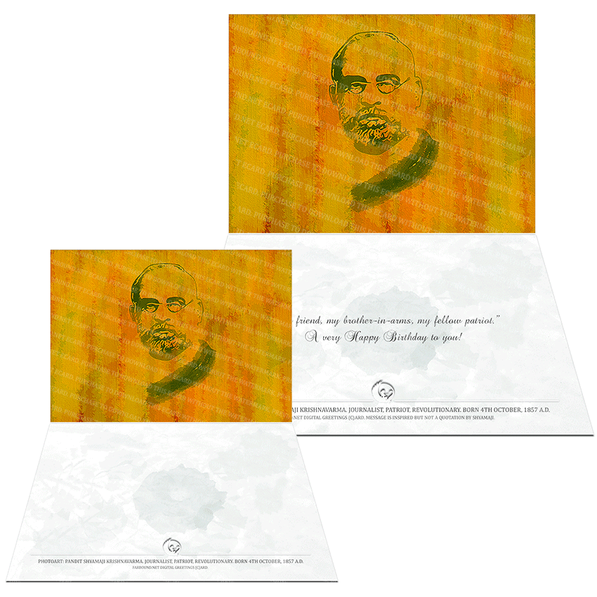 Home Greetings Cards Birthdays Greetings Cards for Birthdays: Say it with Shyamaji Krishnavarma | Handmade Digital Art | Educational History | Patriotic / Birthday Cards.