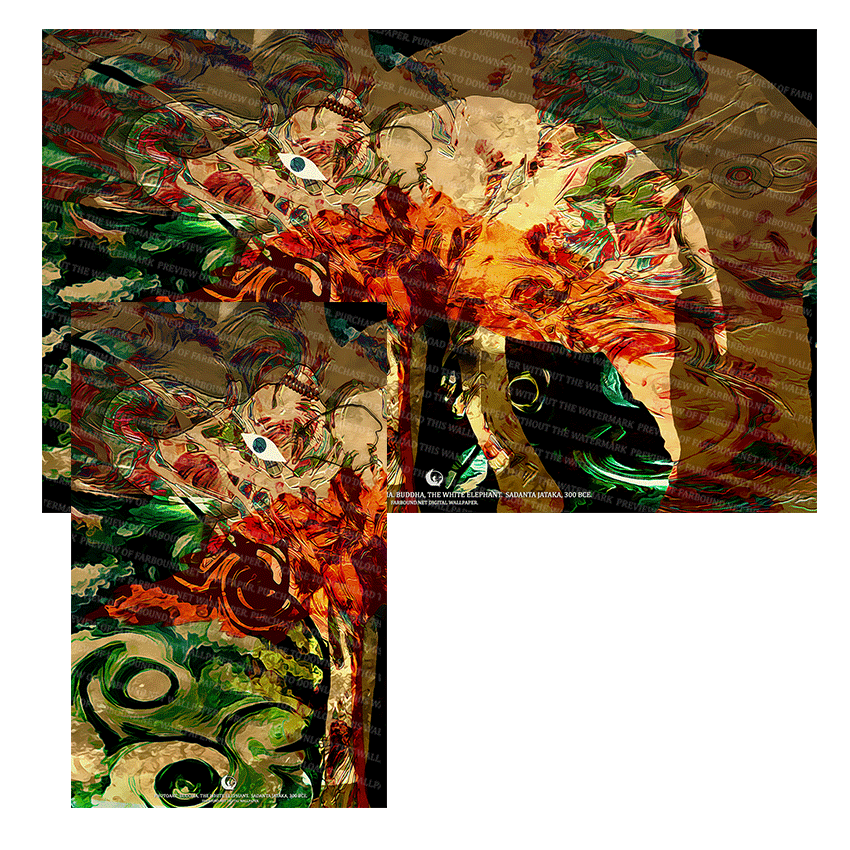 History: This Digital Wallpaper/Desktop Wallpaper/Desktop Background/Laptop Wallpaper/Mobile Phone Wallpaper/Buddha Wallpaper, features a photoart presentation of the Buddha as a White Elephant, joyous after his attainment of Enlightenment. According to the Sadanta Jataka, a compilation of Buddhist oral traditions and canons, created between 300 Bce and 400 Ce, Siddhartha Gautama was a White Elephant in many lives before being reincarnated as the Buddha.