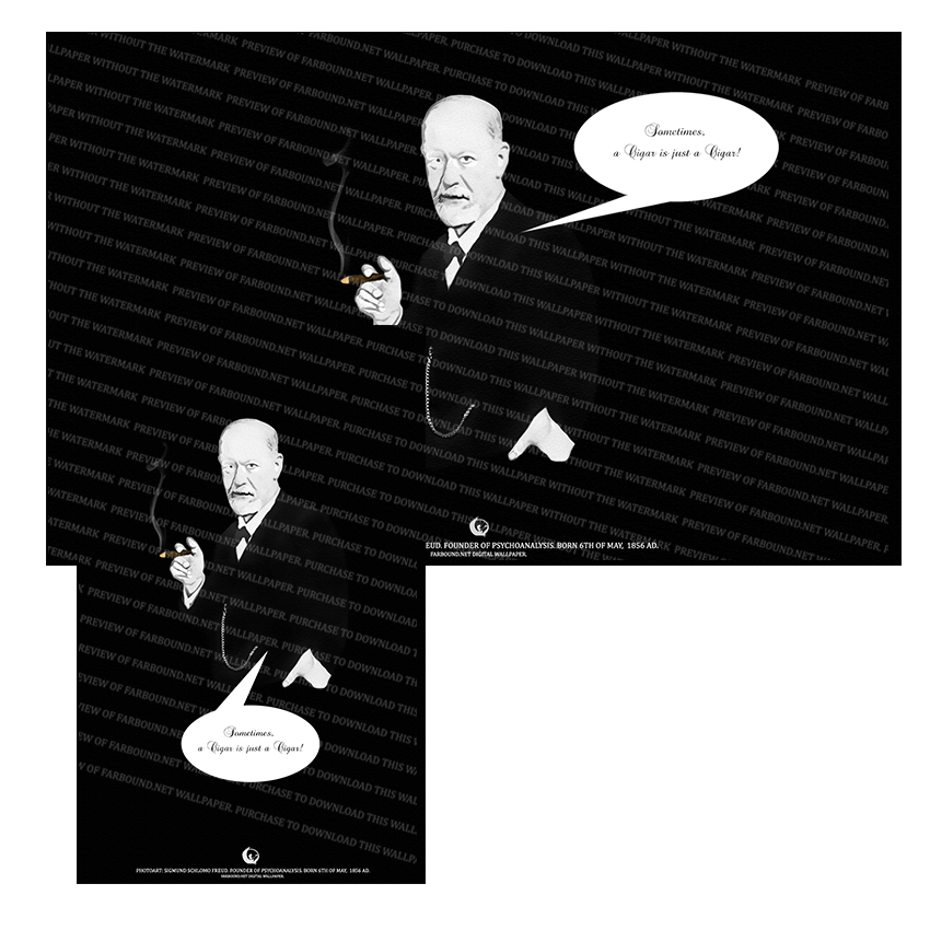 History:his Digital Wallpaper/Desktop Wallpaper/Desktop Background/Laptop Wallpaper/Mobile Phone Wallpaper/Black and White Wallpaper/Famous people Wallpaper for commemorating, honoring and remembering famous people, features a photoart presentation of Sigmund Schlomo Freud, more popularly known as Sigmund Freud. Born on the 6th of May in 1856 Ad, Sigmund Freud was an Austrian neurologist and the founder of modern day psychoanalysis. The Wallpaper also features a Quote by Sigmund Freud.