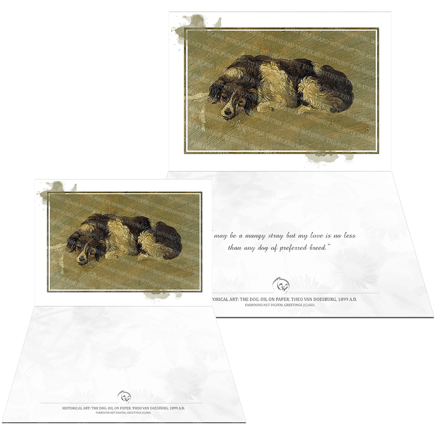 History: This Greetings Card for Dog Lovers features a historical painting titled 'The Dog'. The painting is an oil on paper painting and was produced by artist Theo Van Doesburg, in 1899 Ad. The original painting is at the Centraal Museum in Utrecht, Netherlands.