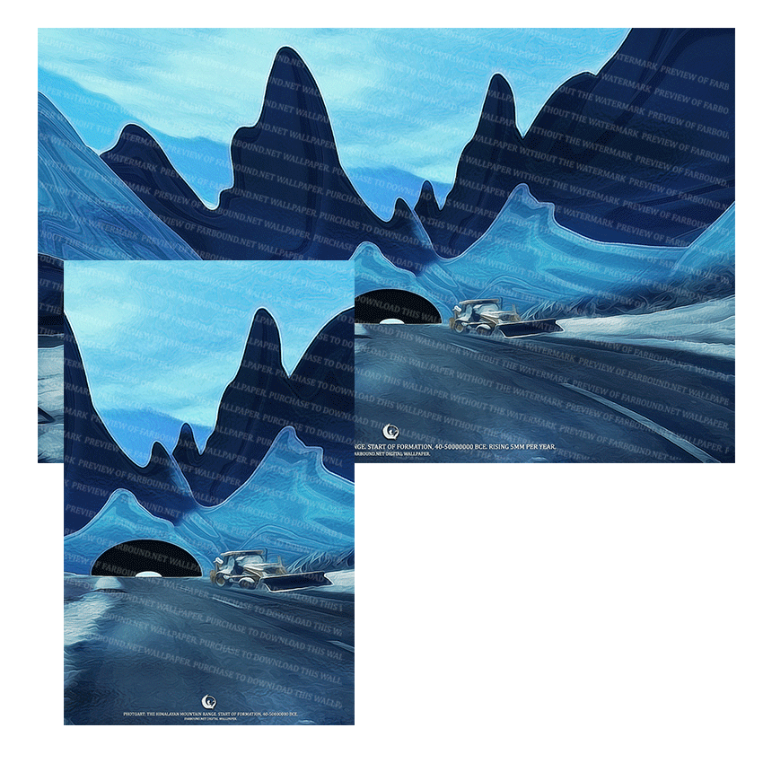 History: This Digital Wallpaper/Desktop Wallpaper/Desktop Background/Laptop Wallpaper/Mobile Phone Wallpaper/Himalayas Wallpaper/Himalayan Landscape Wallpaper/Mountains Wallpaper features a photoart presentation of a road during winters in the Himalayas. The Himalayas was formed around 50000000 Bce when the Indian Teutonic plate having separated itself from the supercontinent of Gondwana had drifted northwards and eventually collided with the Eurasian Teutonic Plate. Though the Himalayas emerged around 50 million years ago, the process begun 70 million years ago when the Indian plate was separated. On collision, the Indian plate had slid underneath the Eurasian plate, and pushed it upwards to form the mountain range. During the process sediments accumulated in the prehistoric sea known as the Tethys Ocean was also compressed and pushed upwards to form parts of the mountain range, explaining why fossils of marine life are to be found in the Himalayas.