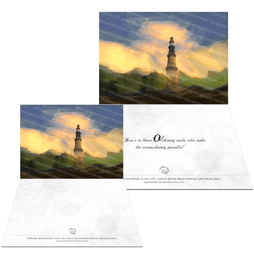 Compliment someone. Or simply send to spread awareness of monuments, artefacts and history. Our Greetings Cards don’t just let you convey emotions but also educate. This Greetings Card features a photoart representation of the Qutub Minar – a towering achievement of human skills.