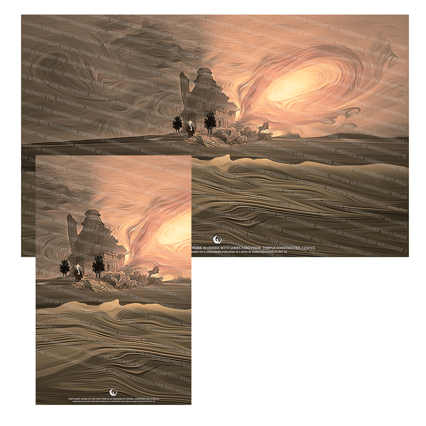 History: This Digital Wallpaper/Desktop Wallpaper/Desktop Background/Laptop Wallpaper/Mobile Phone Wallpaper/Temple Architecture Wallpaper/Sun Temple Konark Wallpaper/Temple Wallpaper, features a photoart presentation of a lithograph of the Sun temple at Konark in Odisha. While the temple was built in 1250 Ce, and is presently a UNESCO World Heritage Site, the lithograph on which this artistic presentation of the temple is based was produced by historian James Fergusson in 1847 Ce. The temple is located some 3 km away from the Bay of Bengal. The lithograph appeared in a book on Eastern architecture titled Ancient Architecture - authored by James Fergusson.