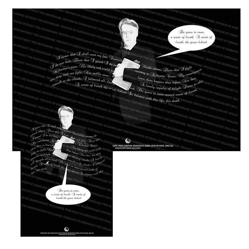 Digital Wallpaper: W.B. Yeats with Quote | Handmade Digital Art | Educational History | Famous People Wallpapers.