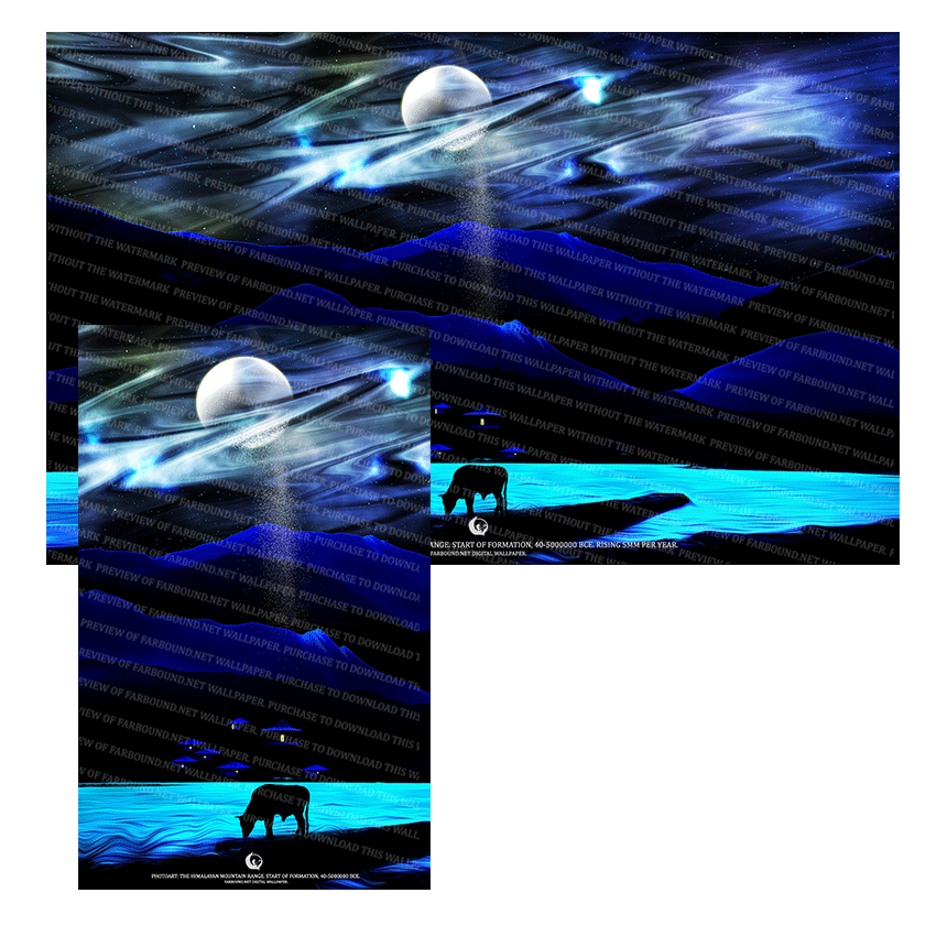 History: This Digital Wallpaper/Desktop Wallpaper/Desktop Background/Laptop Wallpaper/Mobile Phone Wallpaper/Himalayas Wallpaper/Himalayan Landscape Wallpaper/Mountains Wallpaper, features a photoart presentation of an Himalayan landscape at night. The Himalayas was formed around 50000000 Bce when the Indian Teutonic plate having separated itself from the supercontinent of Gondwana had drifted northwards and eventually collided with the Eurasian Teutonic Plate. Though the Himalayas emerged around 50 million years ago, the process begun 70 million years ago when the Indian plate was separated. On collision, the Indian plate had slid underneath the Eurasian plate, and pushed it upwards to form the mountain range. During the process sediments accumulated in the prehistoric sea known as the Tethys Ocean was also compressed and pushed upwards to form parts of the mountain range, explaining why fossils of marine life are to be found in the Himalayas.